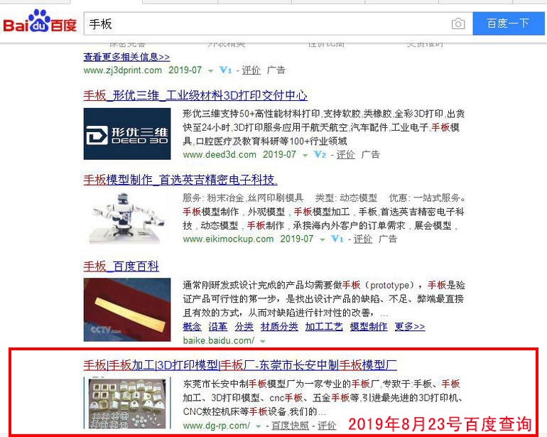手板加工 百度(PC)自然排名第1名